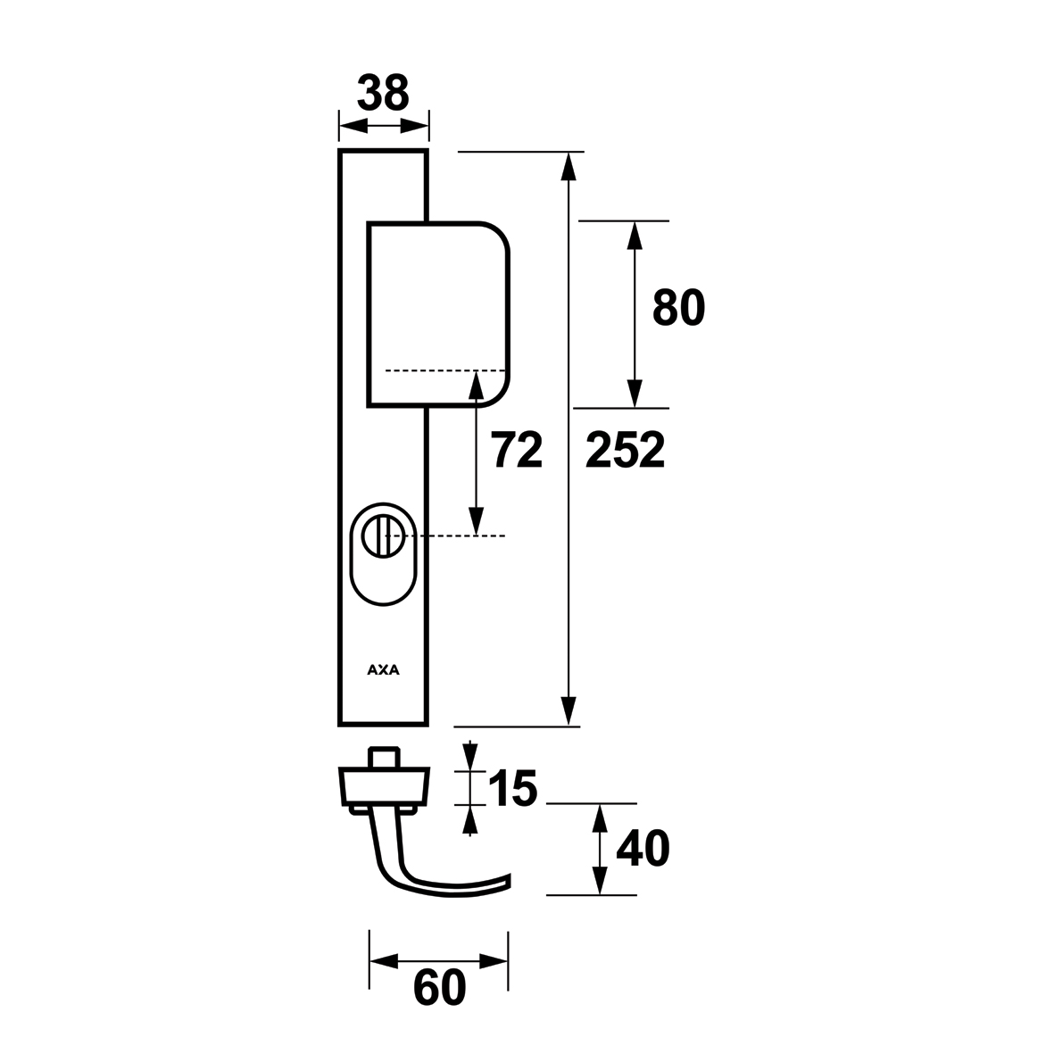 Typ Edge Plus schmal Außen D-Türgriff PZ72 Kernschutz