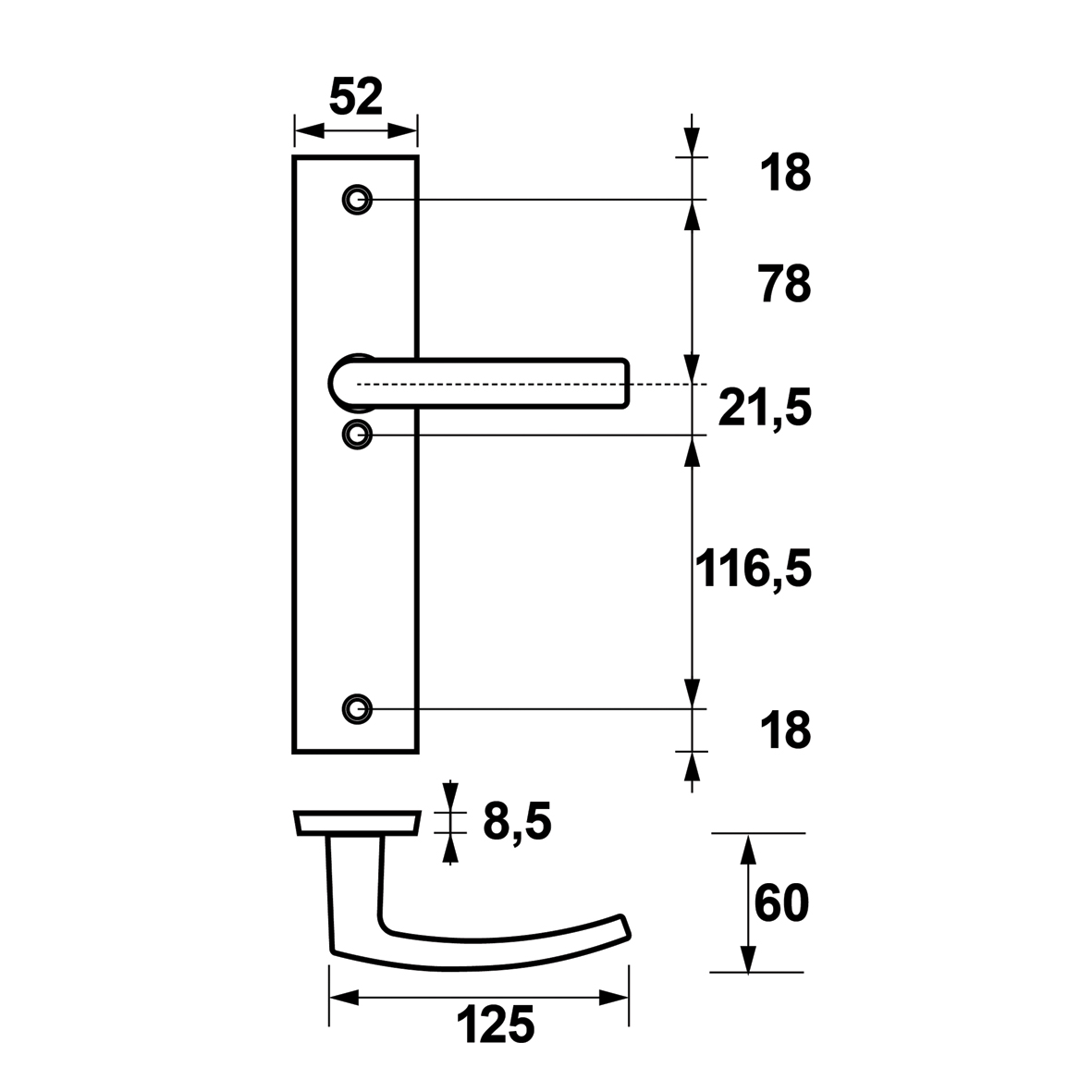 Türdrückerlänge 125 mm