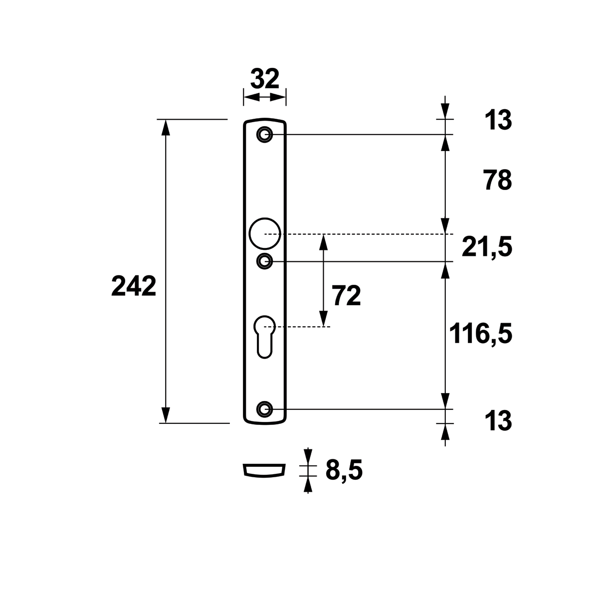 Heart to heart size type handle hole - Euro profile hole (PC)