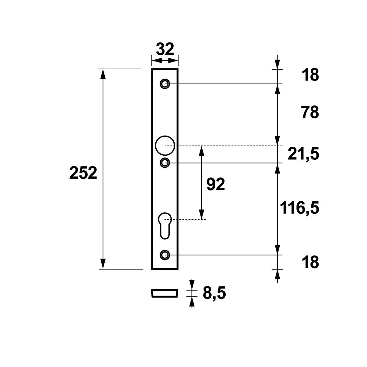 Heart to heart size type handle hole - Euro profile hole (PC)