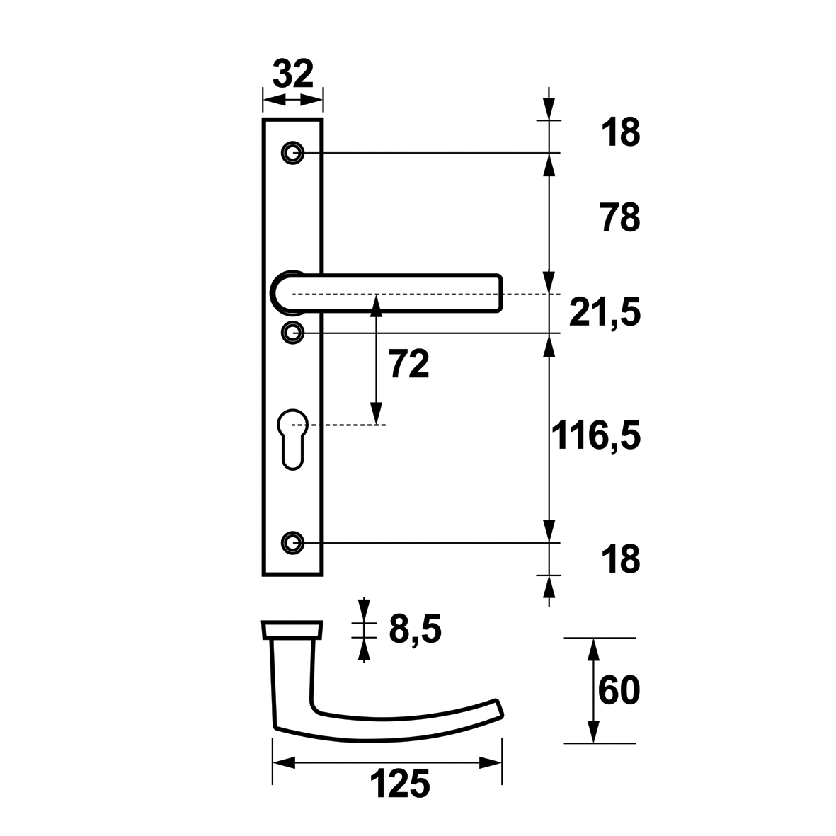 Handle length 125 mm