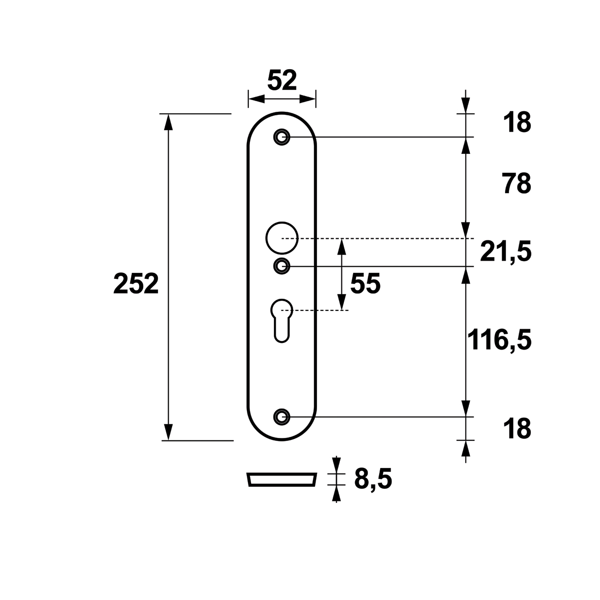 Heart to heart size type handle hole - Euro profile hole (PC)