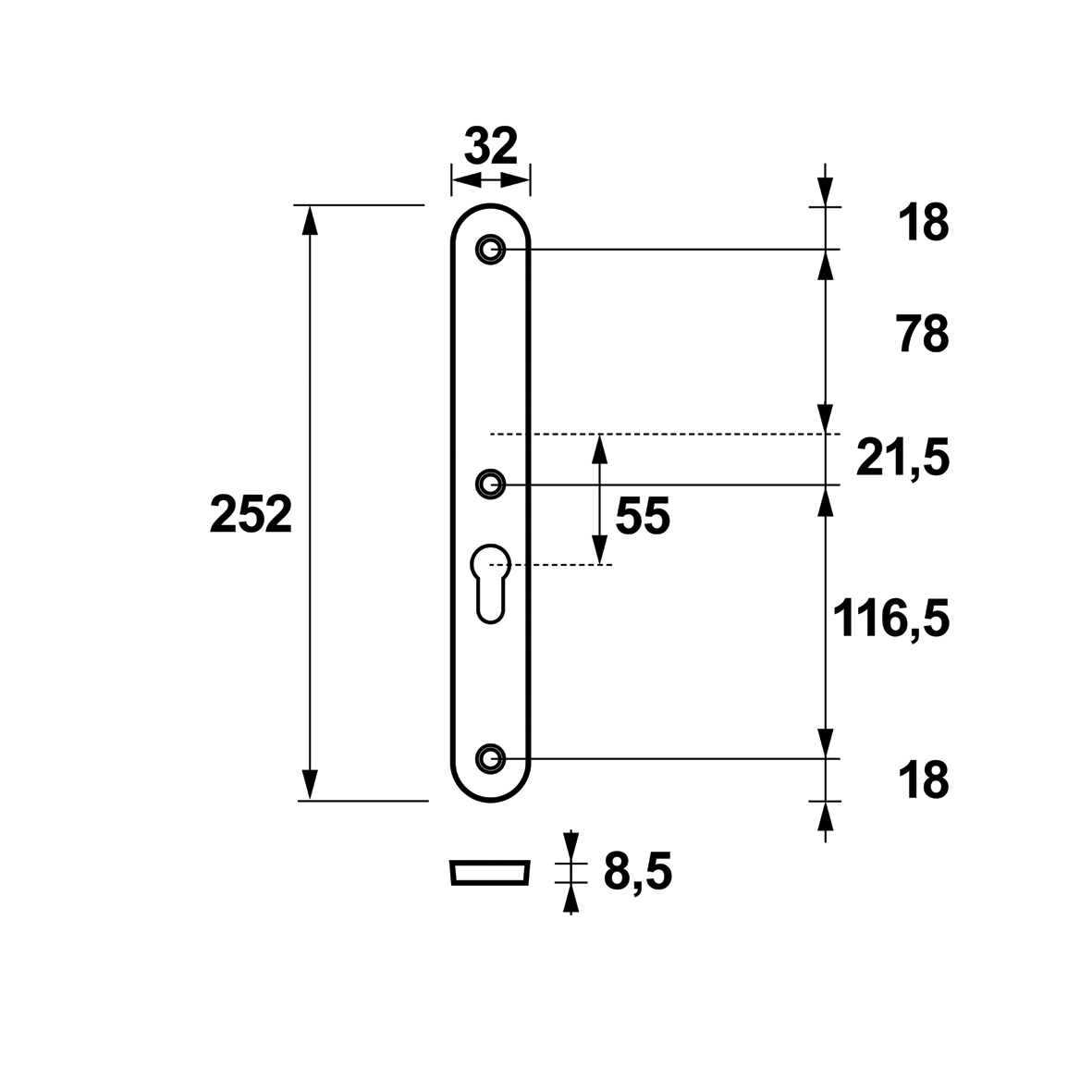 Security backplate Oval narrow inside blind-PC55