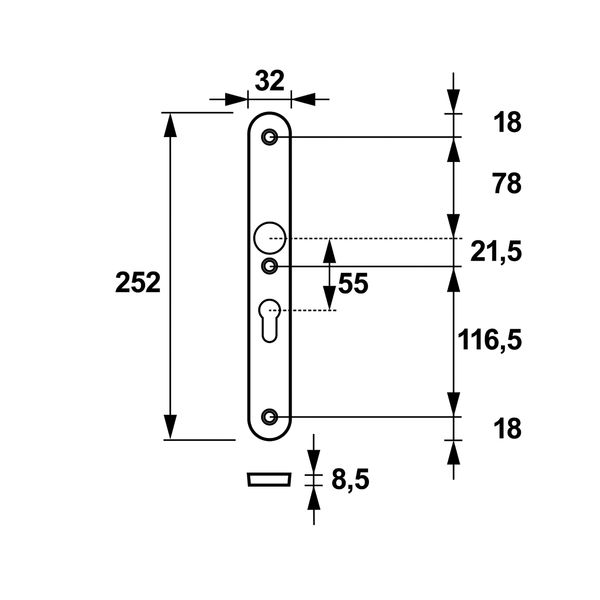 Heart to heart size type handle hole - Euro profile hole (PC)
