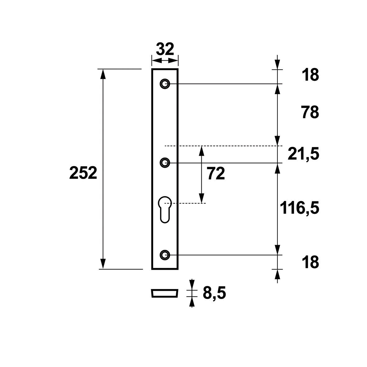 Hart op hart maat type zonder krukgat - profielcilindergat (PC)